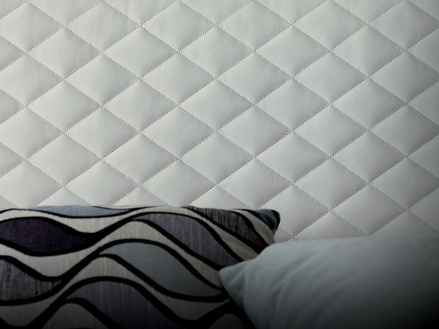 Testata trapuntata a piccoli rombi per un’eleganza che ben si adatta ad ogni stile.