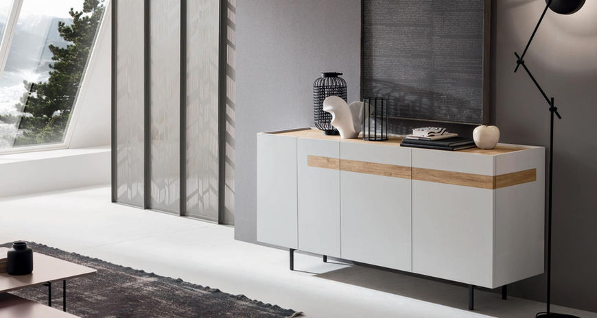Le linee e le geometrie semplici degli arredi possono essere valorizzate dalla scelta e dall’accostamento di particolari materiali, ma anche dall’inserimento di dettagli, come ad esempio gli inserti. Colorati, in legno, eff etto marmo o in altre fi niture, gli inserti decorano le superfi ci con discrezione.